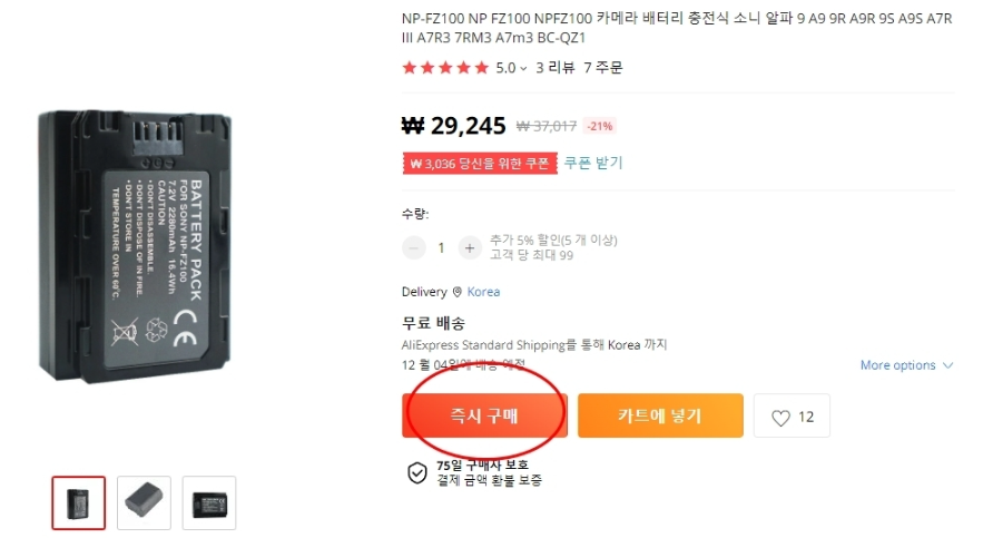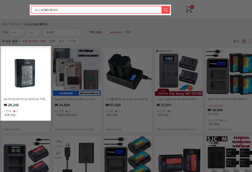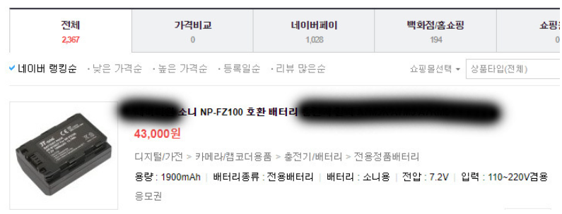저는 마침 카메라 배터리가 필요해서, 하나 찾아서 주문해보겠습니다. 소니 DSLR 카메라 A7M3 의 배터리를 찾아보겠습니다.