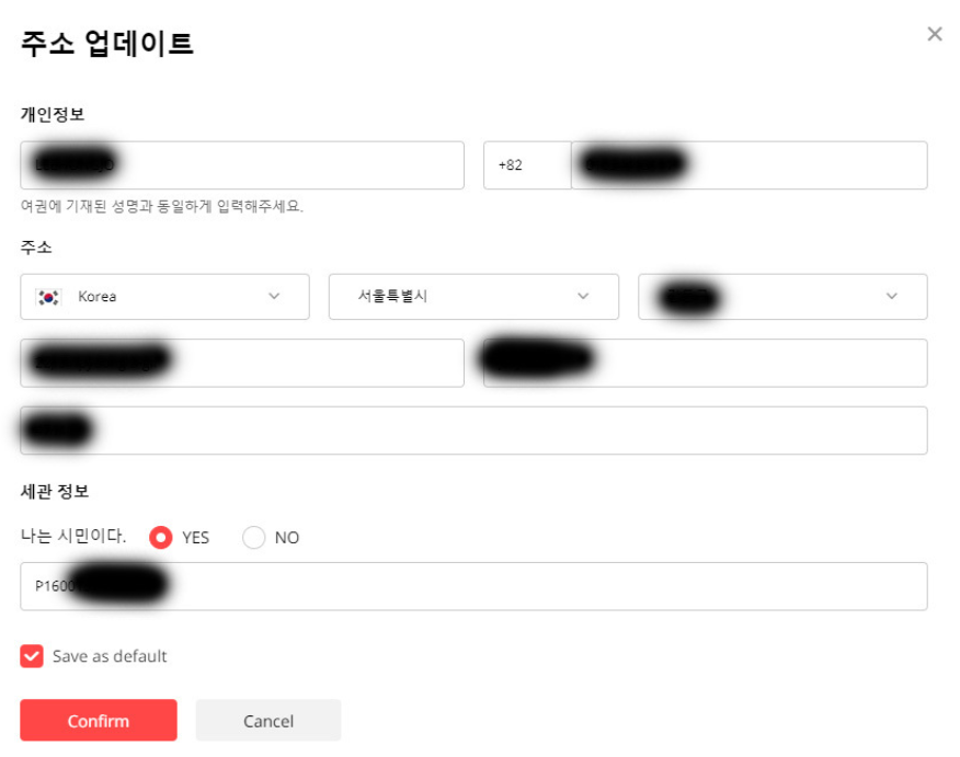 위의 정보들을 다 입력했다면 Save에 체크해서 저장해 주시고 [Confirm] 확인 버튼을 눌러줍니다.